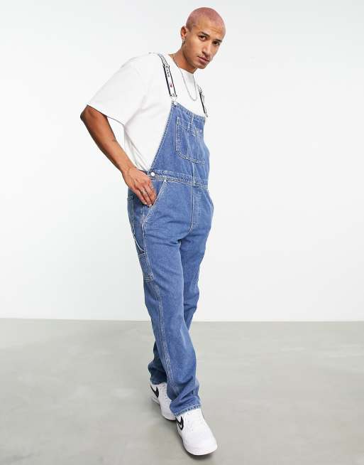 Tommy Jeans carpenter denim loose fit dungarees in mid wash Very well made.