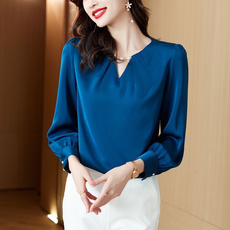 High End Satin Knit Necklace Oversized V Neck Blouse Fashion Work Very well made.