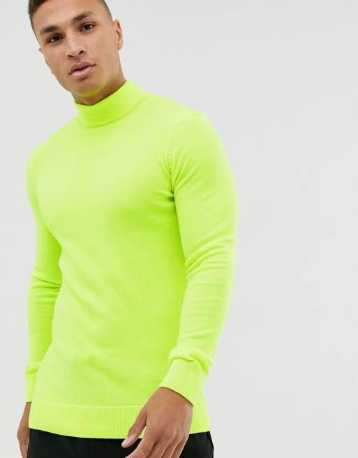 Men s Turtleneck Neon Knitted Sweater boohoo Very well made.