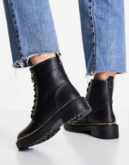 New Look lace up flat military boot with chunky sole in black Very well made.