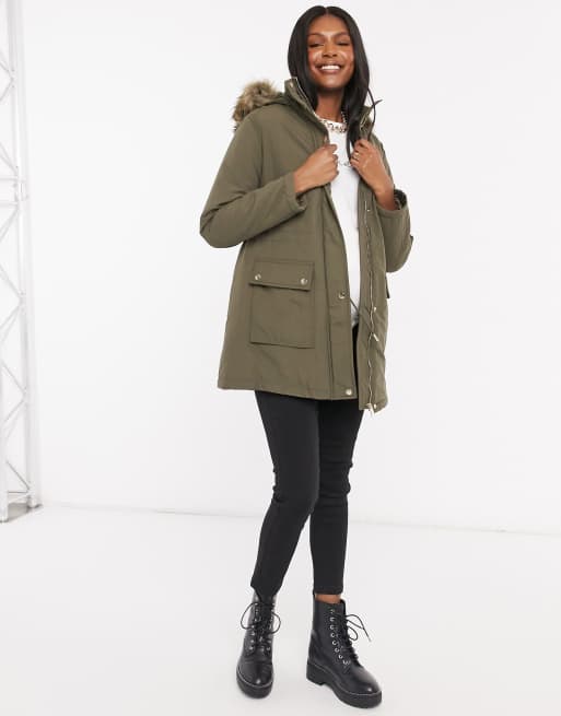 ONLY Tall Khaki Faux Fur Trim Hooded Parka Jacket New Look Very well made.