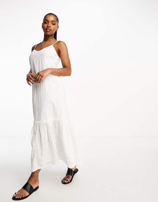 New Look strappy midi dress with broiderie detail in white Very well made.