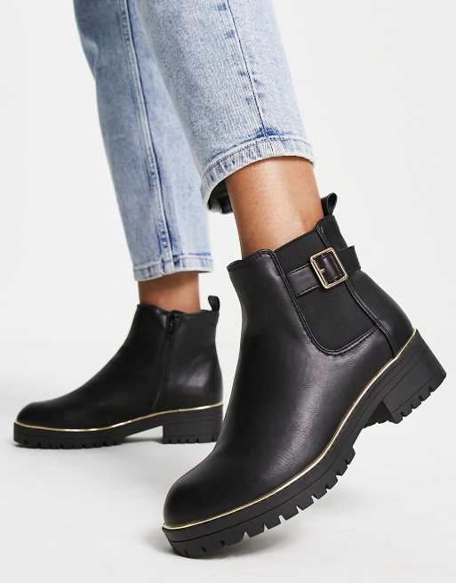 New Look Wide Fit flat chunky chelsea boot with buckle detail in Very well made.
