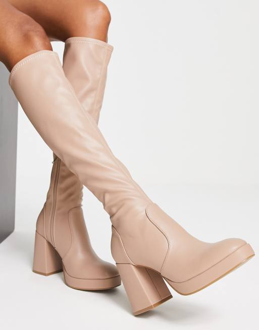 Schuh Della second skin heeled knee boots in stone ASOS Very well made.