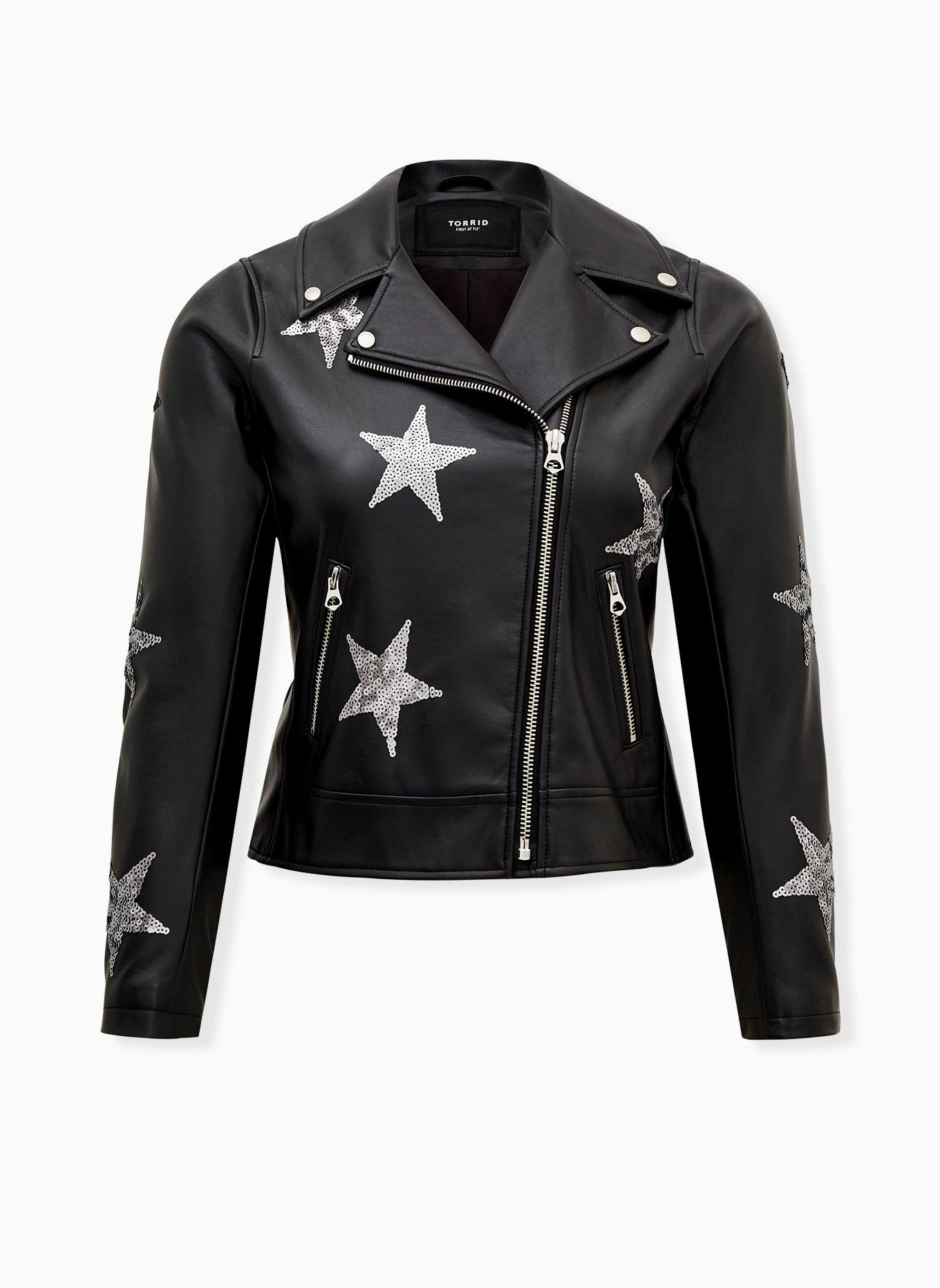 Plus Size Black Sequin Stars Faux Leather Moto Jacket Torrid Very well made.