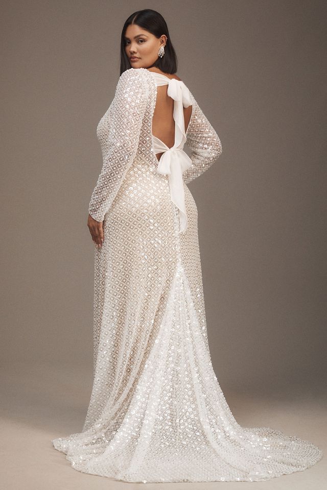 Watters Mia Long Sleeve Open Back Sheath Gown Very well made.