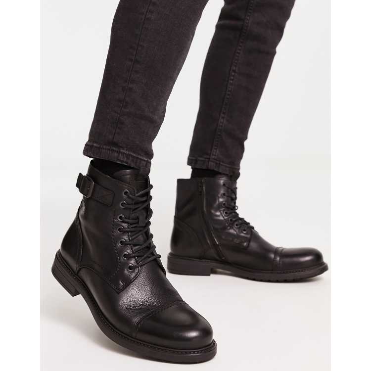 Jack Jones leather lace up boot with side zip in black Very well made.