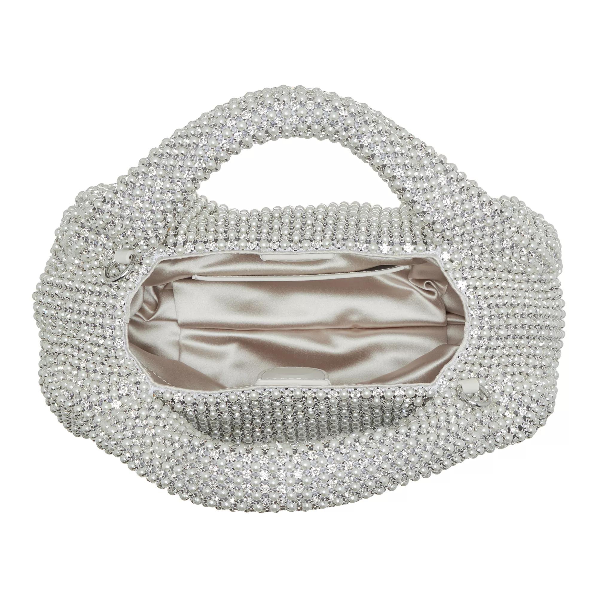 Stuart Weitzman The Moda Crystal Pearl Mini Tote Silk Natural Very well made.
