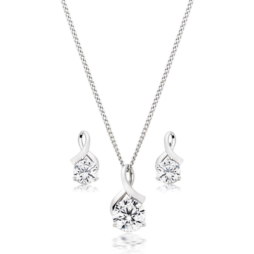 Beaverbrooks 9ct White Gold Cubic Zirconia Pendant and Earrings Set Very well made.
