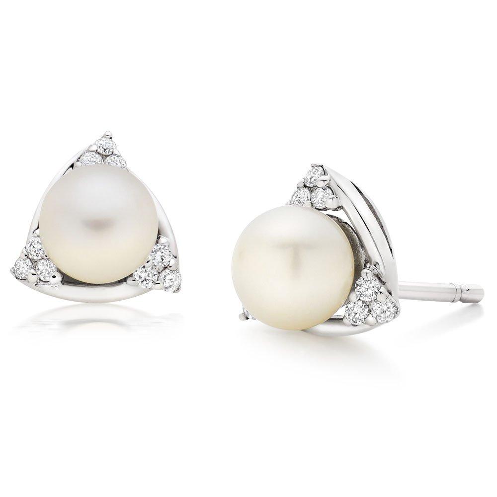 Beaverbrooks 9ct White Gold Diamond Freshwater Cultured Pearl Earrings Very well made.