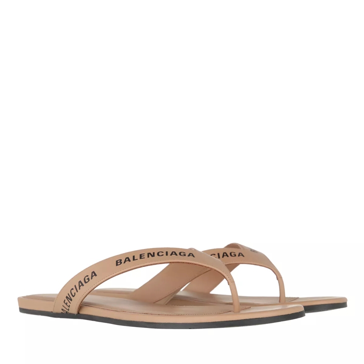 Balenciaga Logo Flip Flop Slippers Plain Leather Beige Black Very well made.