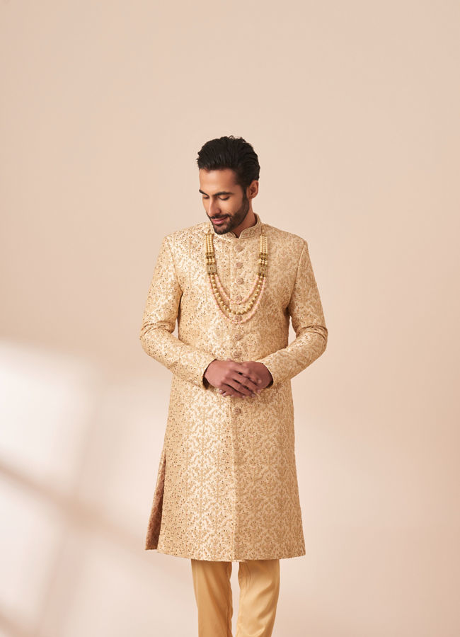 Beige Sherwani with All Over Detailing Very well made.