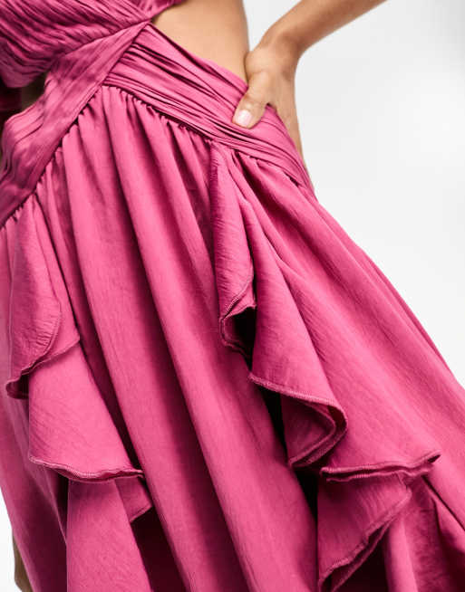 ASOS DESIGN Tall satin ruffle flutter sleeve maxi dress with cut out waist in berry pink Very well made.