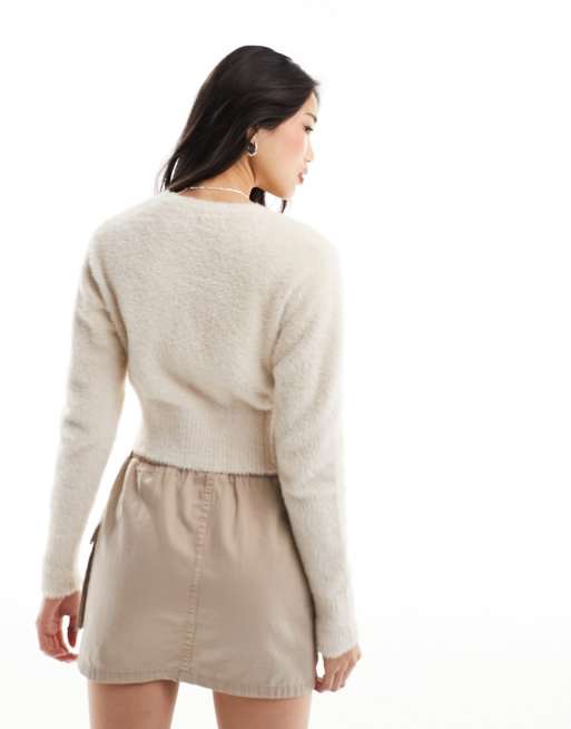 Bershka fluffy knit cardigan in sand ASOS Very well made.