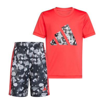 adidas Boys Short Sleeve Poly Tee Camo All Over Print Short Set Very well made.