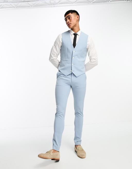 ASOS DESIGN wedding super skinny suit vest in pale blue Very well made.