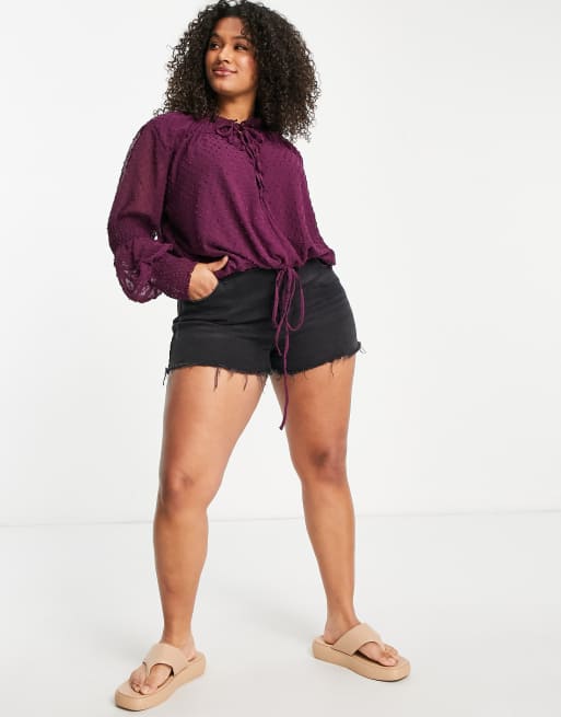Missguided Plus Blusa bordeaux in plumetis con maniche Very well made.