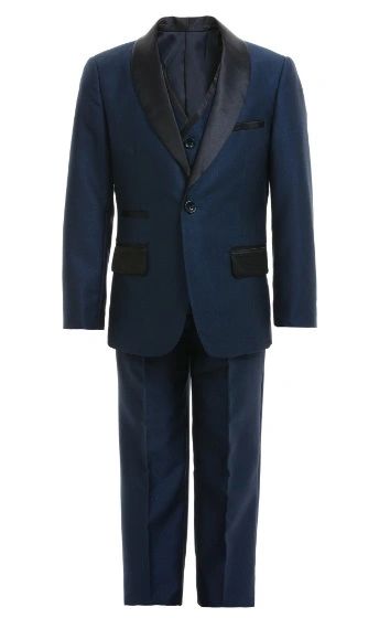 Boys Navy Tuxedo Suit with Black Satin Trims. Page Boy Suit Very well made.