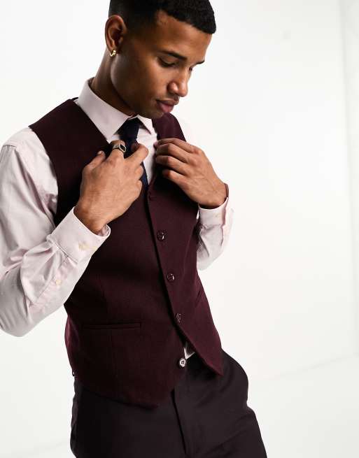 Designer Tuxedo Wedding Party Burgundy Suit Vest Fitted Slim Fit Very well made.
