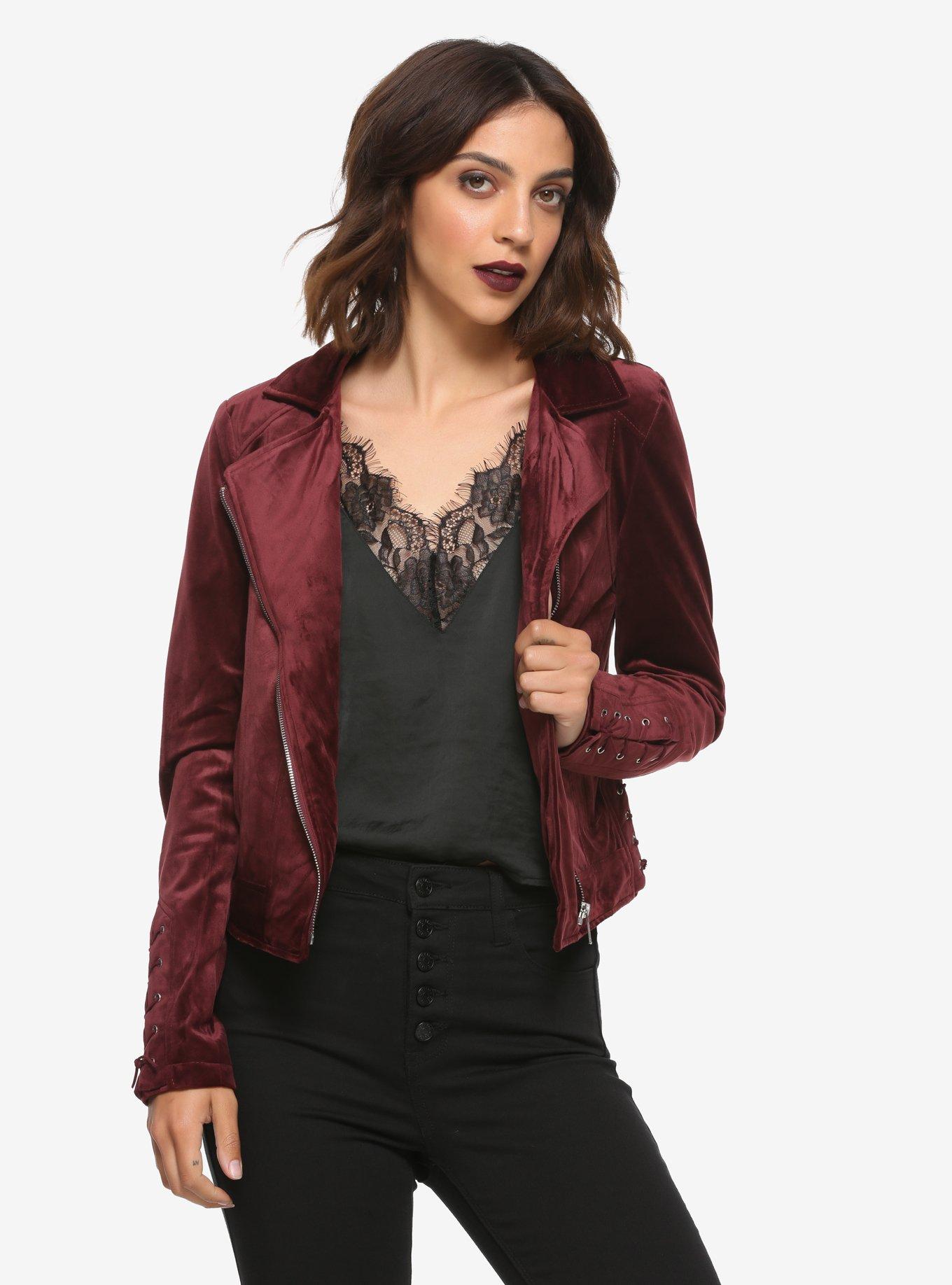 Burgundy Velvet Girls Moto Jacket Very well made.