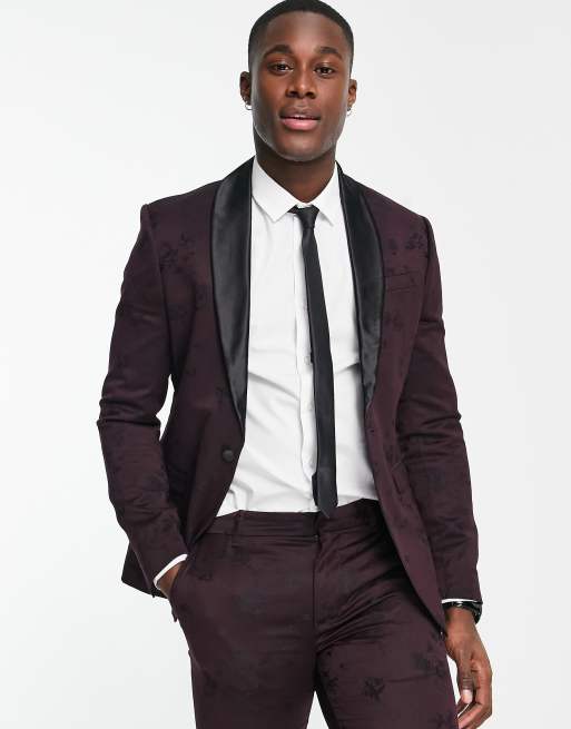 New Look skinny suit jacket in burgundy jacquard ASOS Very well made.