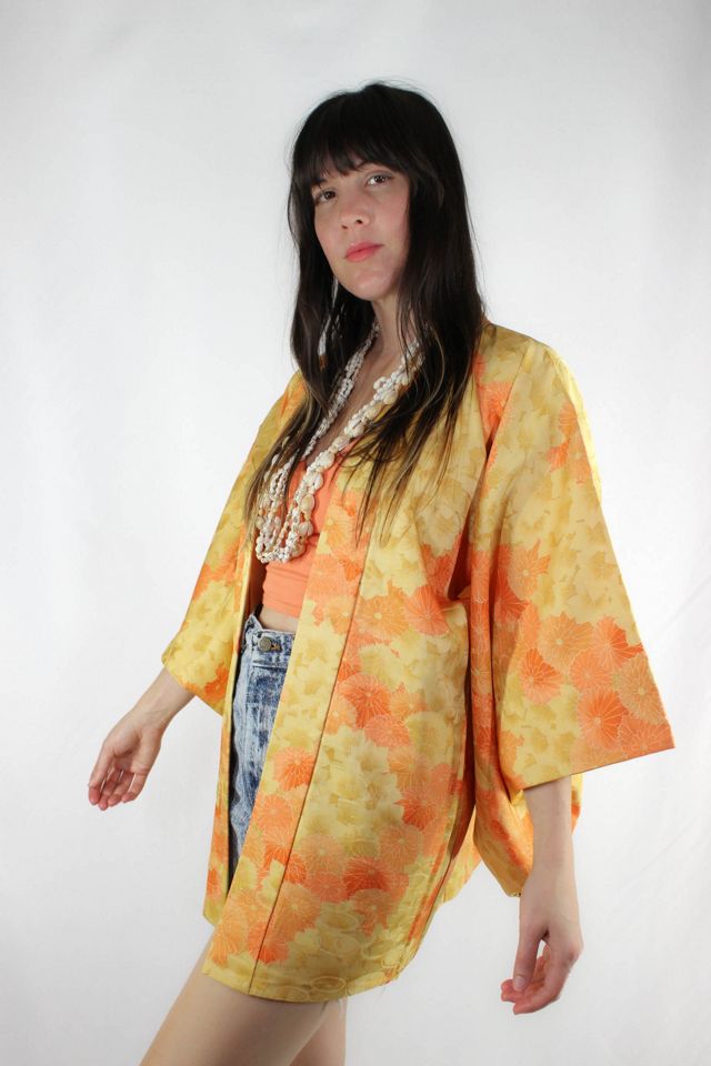 1960s Floral Butterfly Haori Kimono Selected By Moons Junes Vintage Very well made.