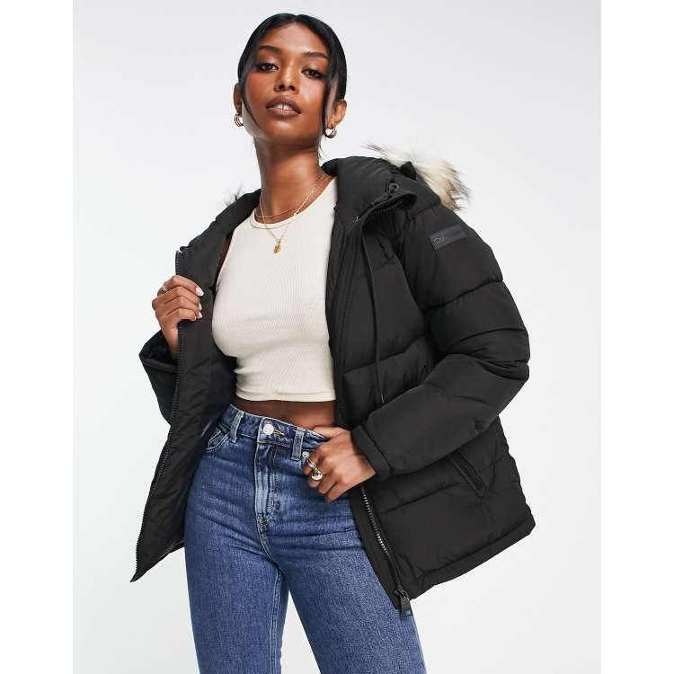 Calvin Klein faux fur trim hooded jacket in black ASOS Very well made.
