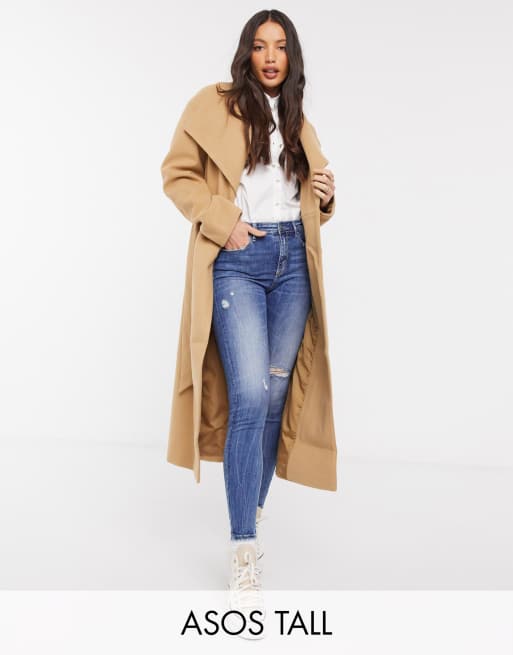 ASOS DESIGN Tall longline belted skater coat in camel Very well made.