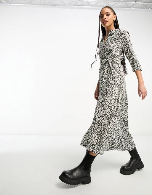 JDY Vestito camicia lungo nero a fiorellini con cintura ASOS Very well made.