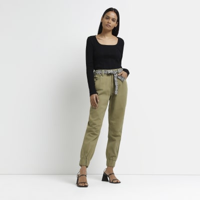 River Island Khaki Belted Utility Cargo Trousers in White Lyst Very well made.